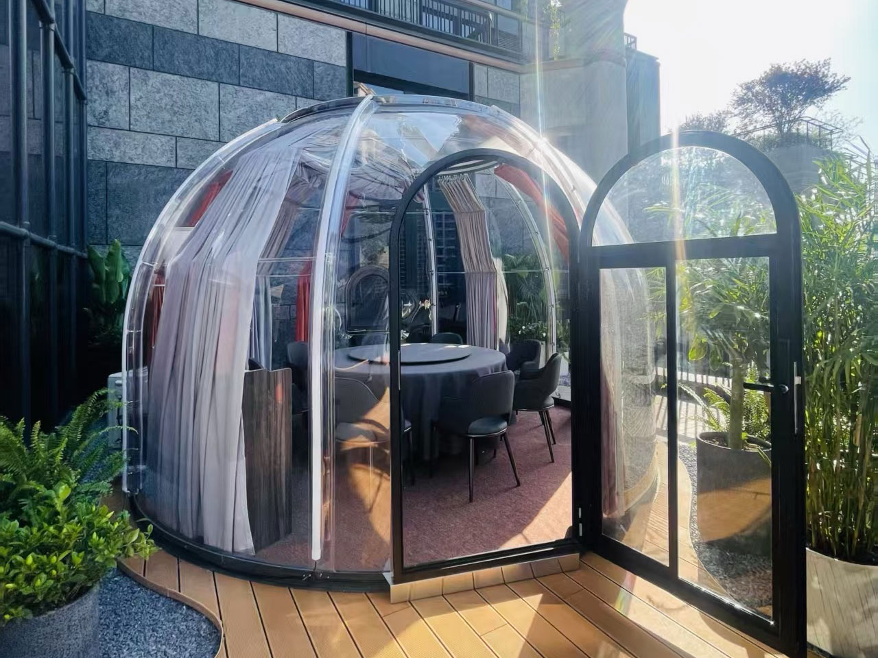 BBBOX 星旅艙採用半透明圓頂設計,可展現高視覺辨識度與通透感,適合應用在景觀餐廳、屋頂空間、特色旅宿、園區主題裝置及活動展示。其空間可依照不同主題自由佈置,具備高度可塑性,不論是營造浪漫氛圍、打卡亮點或商業展示功能,都能迅速吸引目光並提升場域價值。
